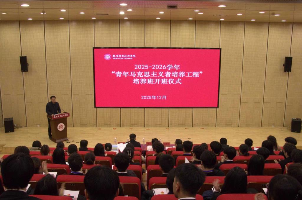 为深入学习贯彻党的二十届四中全会精神,落实立德树人根本任务,培养新时代青年马克思主义者,12月3日下午,我校2025-2026学年“青年马克思主义者培养工程”培养班开班仪式在一号报告厅举行。学校党委副书记赵勇,党委委员、组织部(统战部)部长李坤,马克思主义学院、团委负责人,各团总支负责人、团委工作人员及60名校级青马班学员参加,仪式由团委书记牛志远主持。
