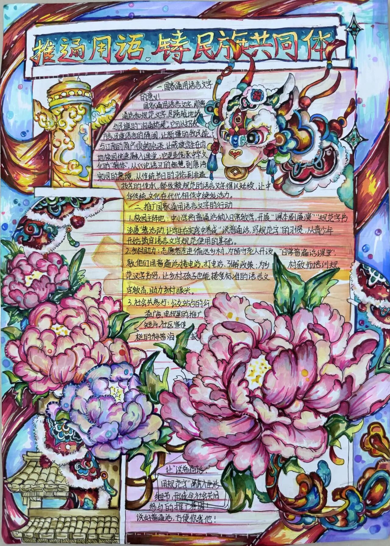 为引导学生持续增强自觉规范使用国家通用语言文字的意识,大力弘扬爱国主义精神,树立高度的文化自觉与文化自信。近日,护理学院团总支举办“加大国家通用语言文字推广力度,促进铸牢中华民族共同体意识”主题手抄报活动。